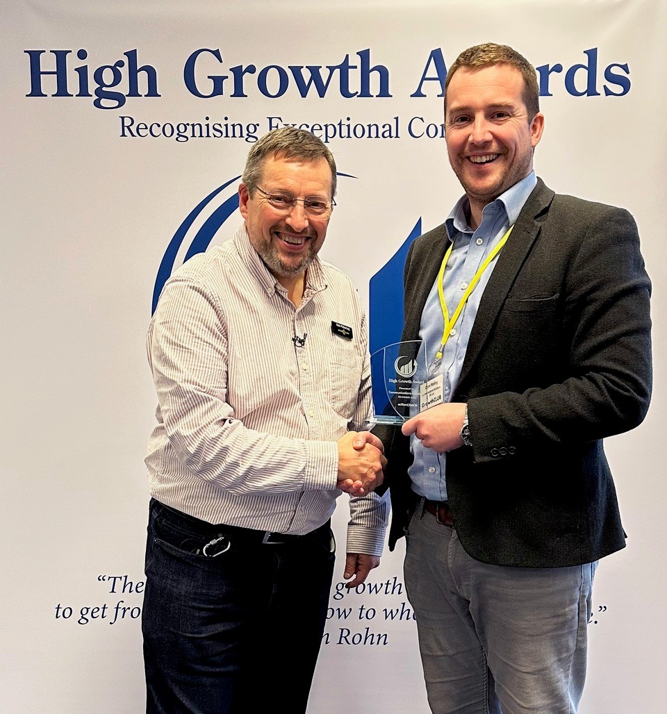 We’re proud to share that Communications Solutions UK has been recognized for outstanding growth for the second quarter in a row!  Rob Pickering of ActionCoach presented Chris Watling, our MD with yet another High Growth Award at the December planning day.
